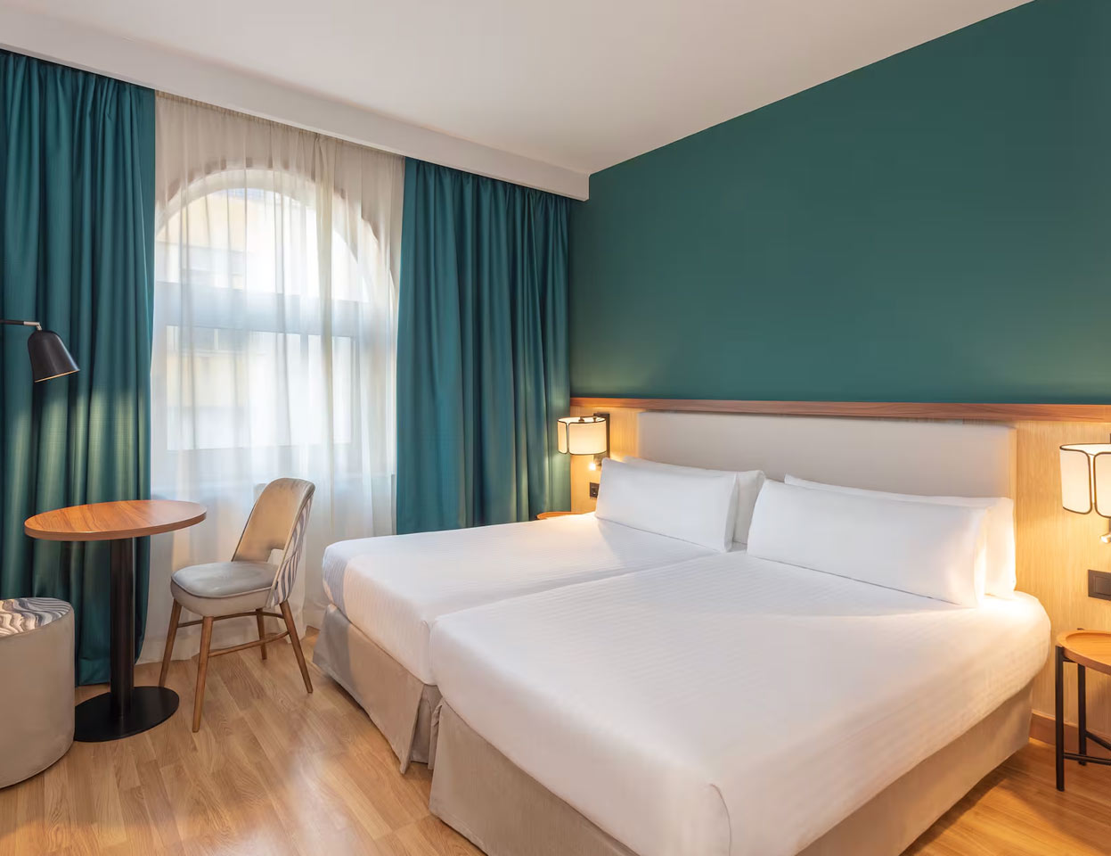 Céntrico y perfectamente comunicado con el aeropuerto y muy cerca de la estación de tren y del Centro de Congresos.